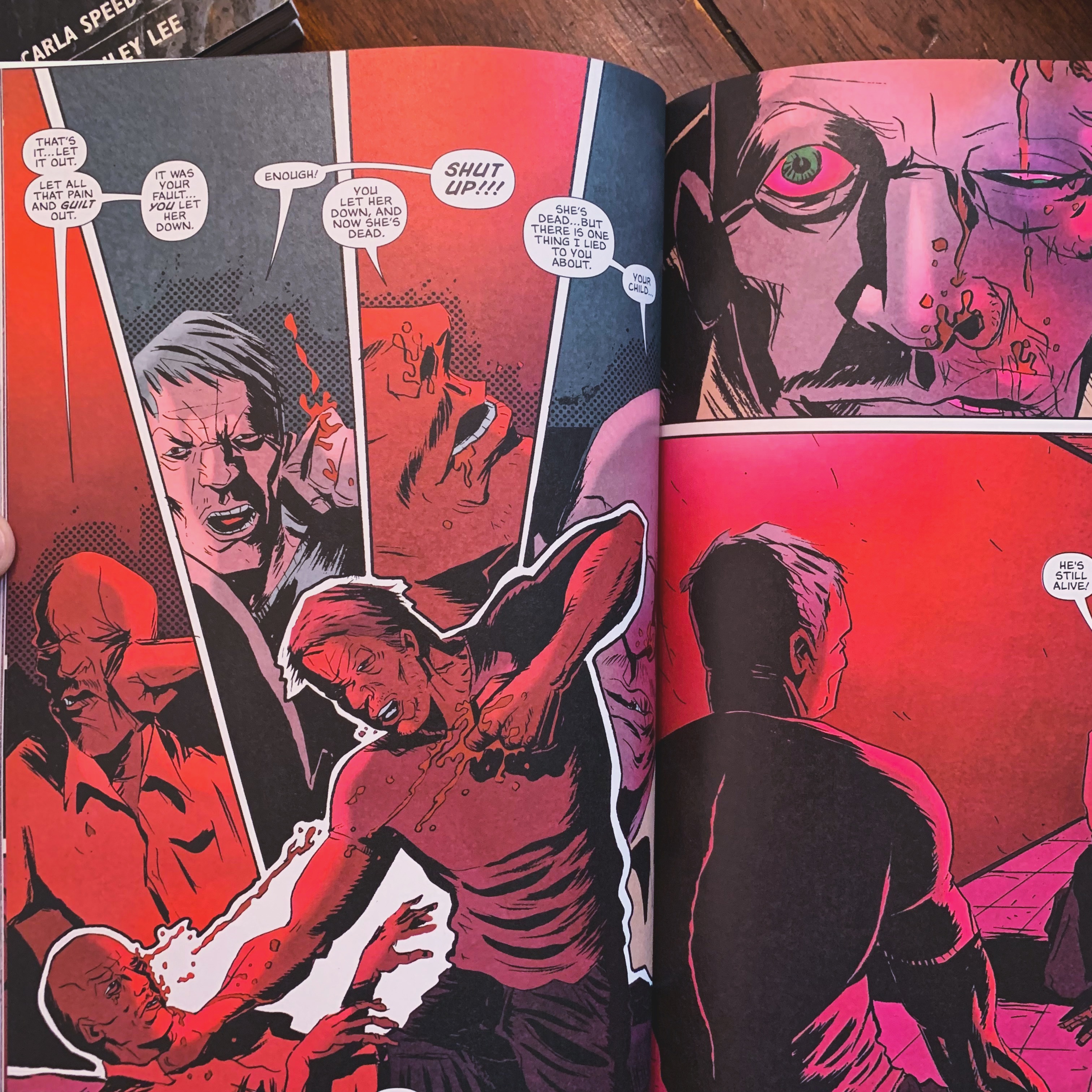 This series is awesome! The writing and art by Lemire are on point, as usual (swipe for examples of art). I love the creativity he puts into his layouts, and the different directions he takes the storyline. This second volume felt darker and more disturbing than the last, and it was definitely more violent. There’s a sense of anticipation (and dread) as we move towards the final act in volume 3. I’m also glad that Jepperd has his head back on straight, and it’s nice to see him and Gus back together again.