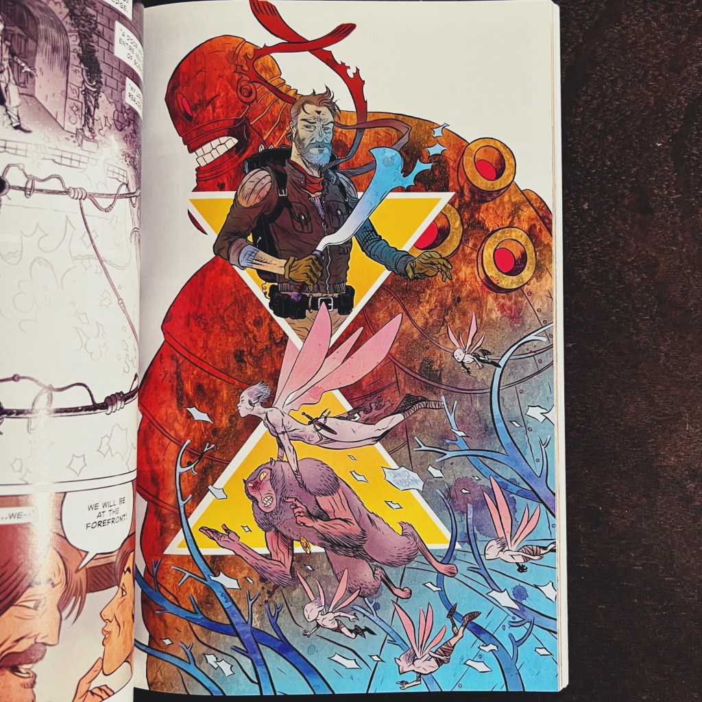 ⭐️ ETHER, VOL 1 is a graphic novel from @darkhorsecomics written by @matt.kindt.for.real and illustrated by @davidrubinm. It’s about a scientist/adventurer getting wrapped up in the mysteries of a magical fantasy world. This is exactly what I want in a FUN comic. Surprises and excitement on every page, dazzling artwork, engaging story, interesting characters, etc. I had a blast reading this first volume, and was especially eating up all the strange creatures and interesting world building! Swipe to the end to see the screaming bullet 😂
