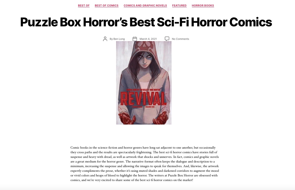 A list of the best sci-fi horror comics you need to be reading (written for Puzzle Box Horror)